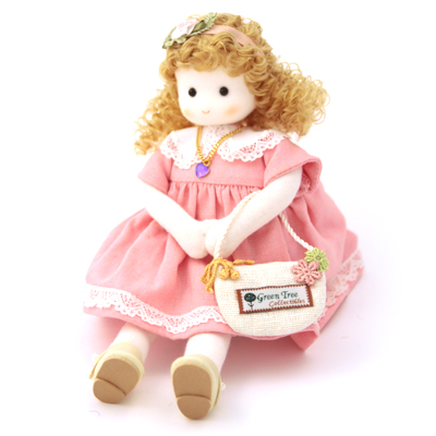 A handmade musical Doll of The Month - February that plays "You are My Sunshine". Wind her up and she plays for almost 3 minute while her head moves. 8" tall, around 6" tall when sitting.